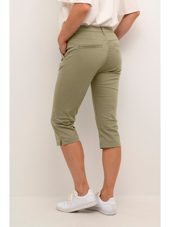 Эти укороченные брюки прямого кроя, средней посадки, шлевками для ремня, молнией и боковыми карманами. Гладкая, сдержанная поверхность для современного образа.