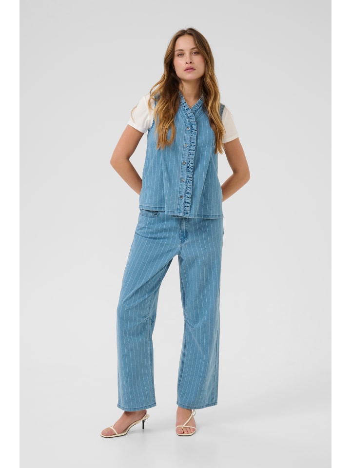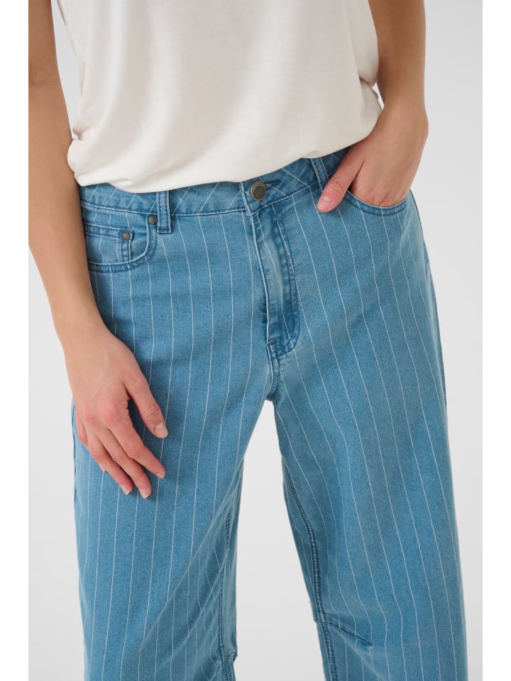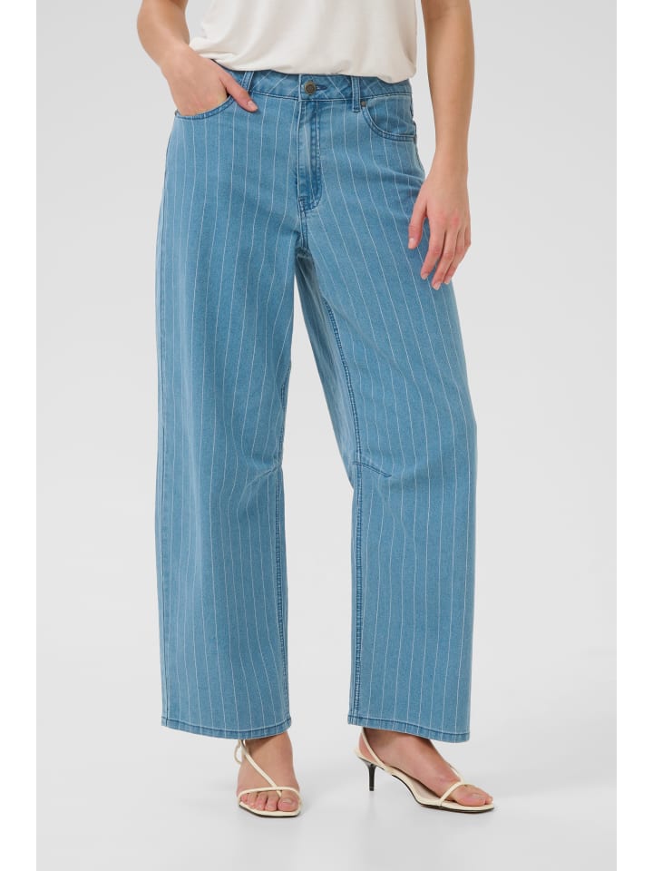 Джинсы прямого кроя в полоску с классическим пятикарманным кроем и средней посадкой. Мягкая поверхность для стильного, современного образа.
