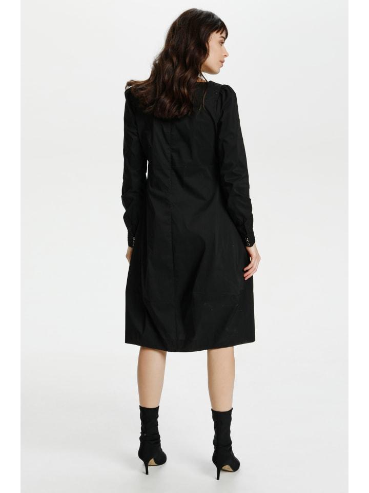 Элегантное платье миди свободного кроя с вырезом лодочкой и длинными рукавами. Универсальное и приятное на ощупь, идеально подходит для повседневной носки.