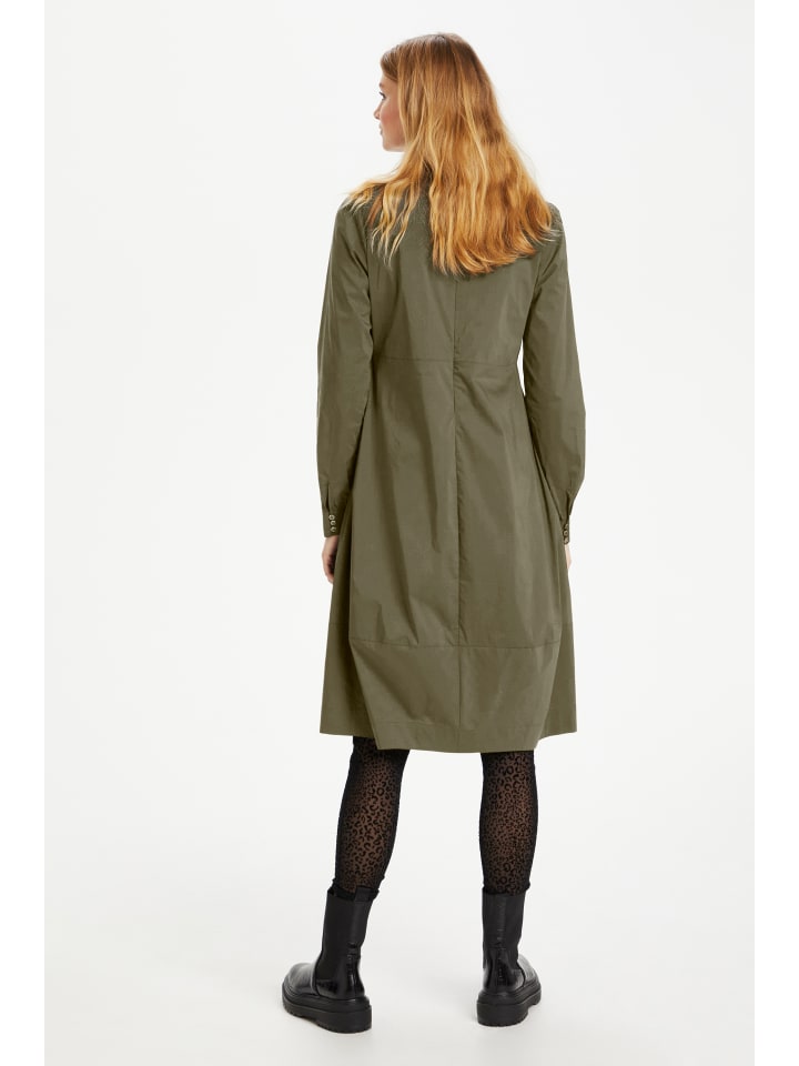 Элегантное платье миди свободного кроя с вырезом лодочкой и длинными рукавами. Универсальное и приятное на ощупь, идеально подходит для повседневной носки.