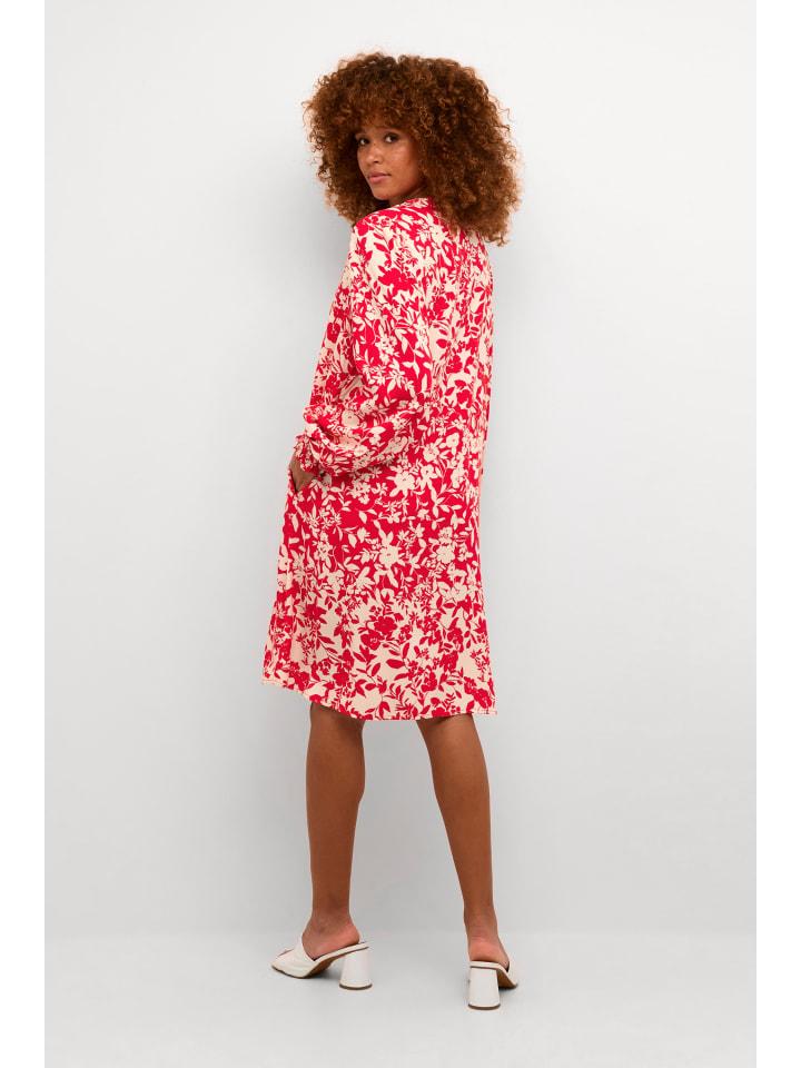 Это платье с цветочным принтом прямого свободного кроя, V-образным вырезом и длинными рукавами с присборенным подолом. Струящийся силуэт.