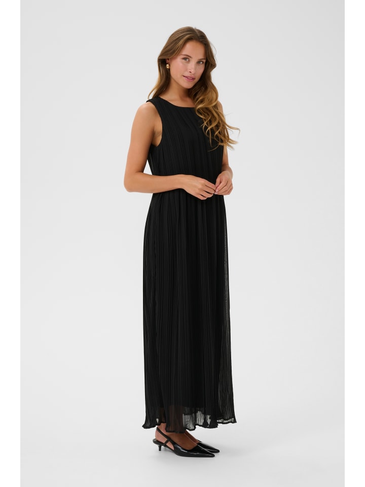 Платье макси с тонкими складками, без рукавов, с круглым вырезом. Струящийся, изящный силуэт и свободный расклешенный крой.