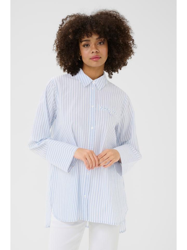 Рубашка в полоску прямого кроя с классическим воротником и длинными рукавами. Широкие манжеты и нагрудный карман добавляют акценты. Гладкая и легкая на ощупь.