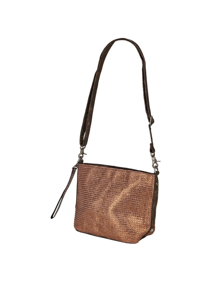 Сумка через плечо KISSY впечатляет уникальным сочетанием материалов. Сочетание рафии и металлического эффекта, а также фирменный брелок делают эту сумку уникальным аксессуаром для вашего образа.