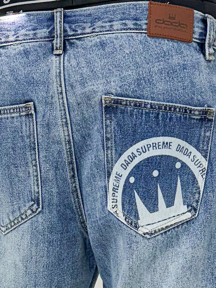 ---- Coin Crown DADA SUPREME Мужские джинсовые шорты свободного кроя с логотипом в виде монеты и короны, стираный деним ---- Товар соответствует размеру. Материал: 100% хлопок Посадка: удобная Застежка: молния 8932 Инструкции по уходу: машинная стирка при 30°C