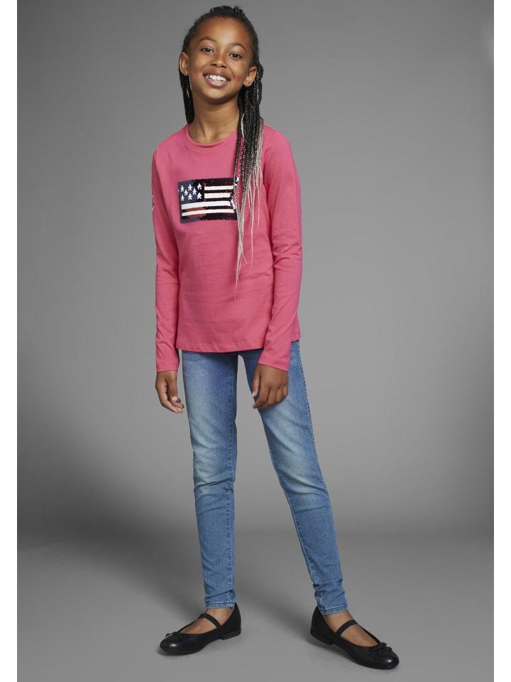 Модная рубашка с длинным рукавом от DELMAO, украшенная мерцающими пайетками. Длина до бедер, стандартная ширина и модный значок. Эластичный, мягкий трикотаж обеспечивает комфорт при прикосновении к коже.