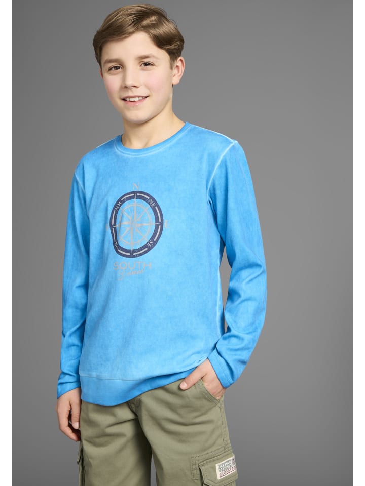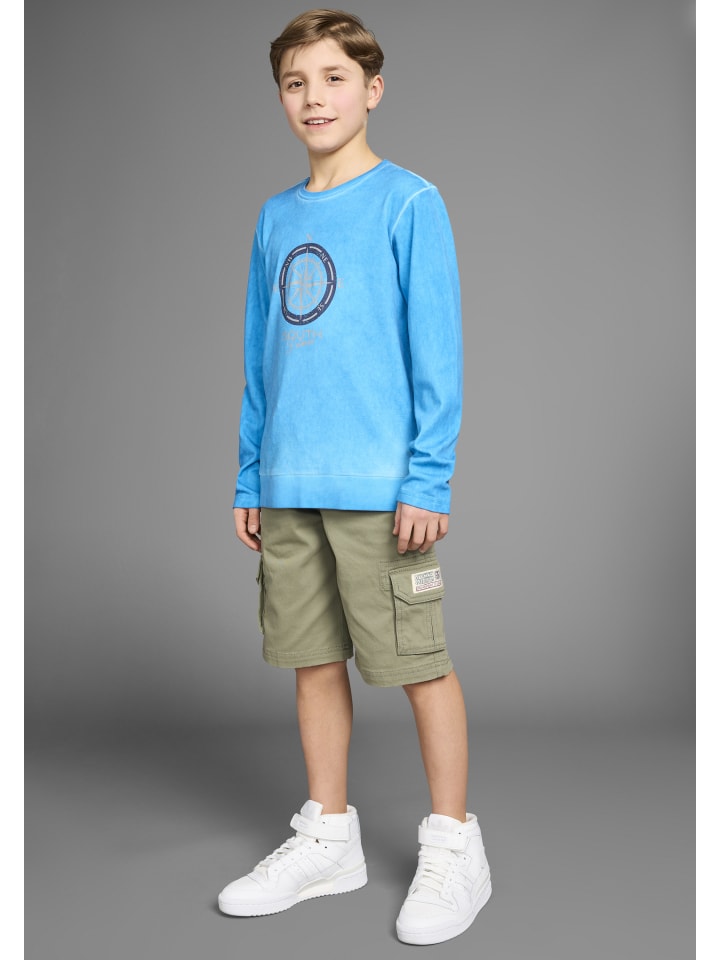 - Рубашка с длинными рукавами, круглым вырезом и ребристыми манжетами для мальчиков.