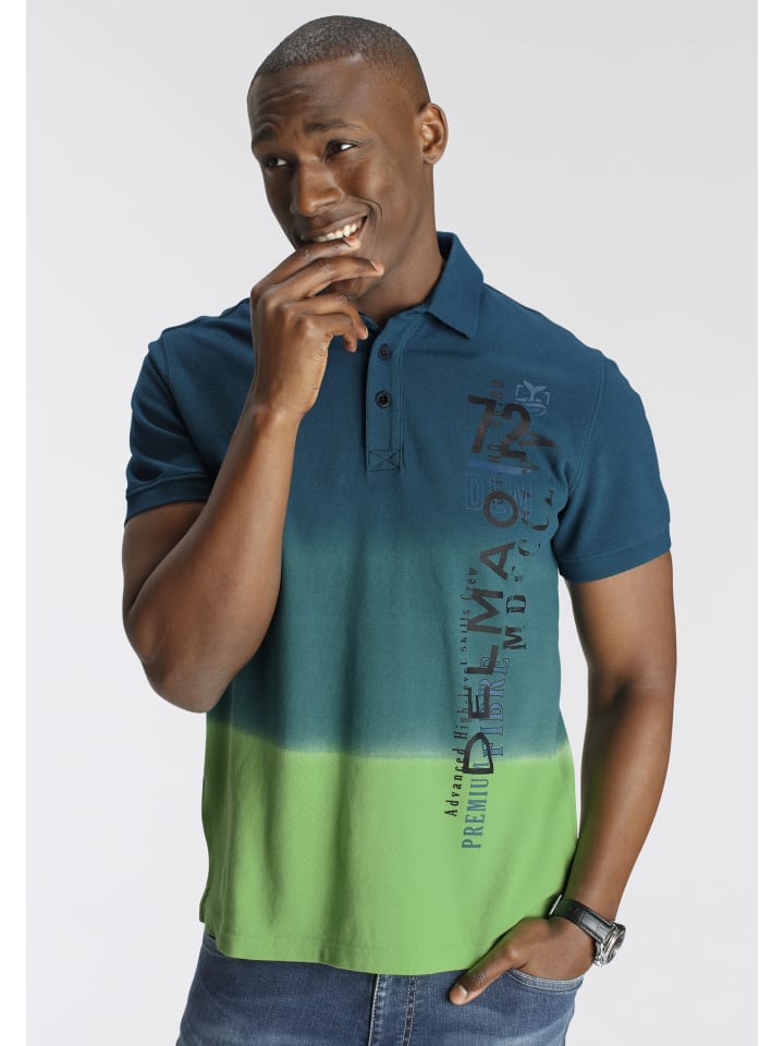 Простая мужская рубашка-поло от DELMAO с принтом. Крой стандартной ширины. Короткие рукава. Верх изделия приятен на ощупь благодаря дышащей ткани пике.