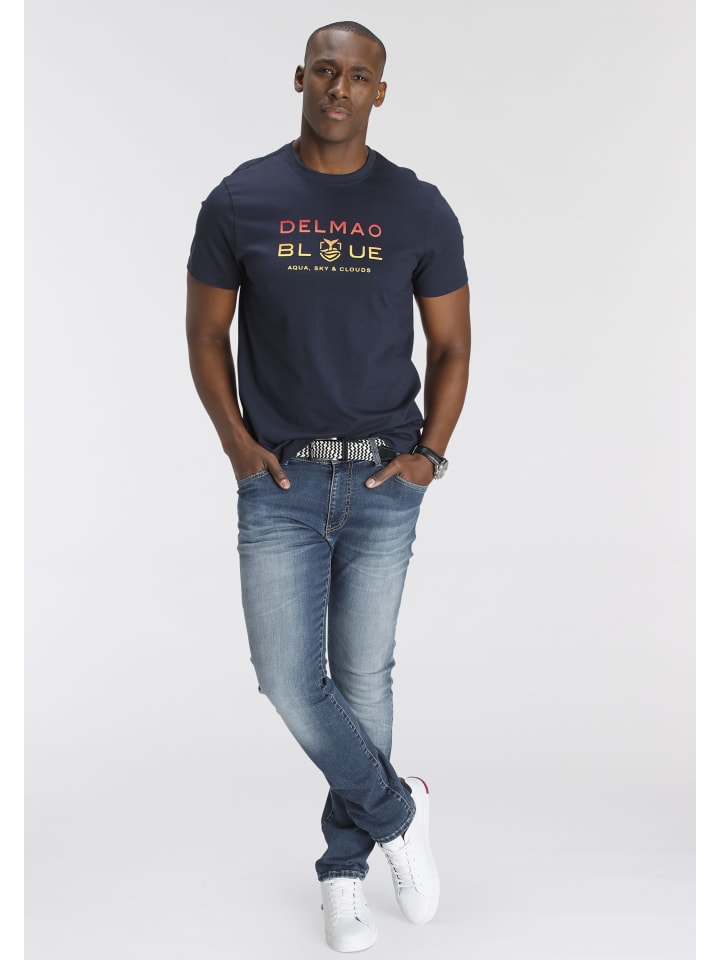 Классическая мужская футболка DELMAO с принтом. Классический крой идеально подходит для повседневной носки. Верх выполнен из мягкого эластичного трикотажа для максимального комфорта.
