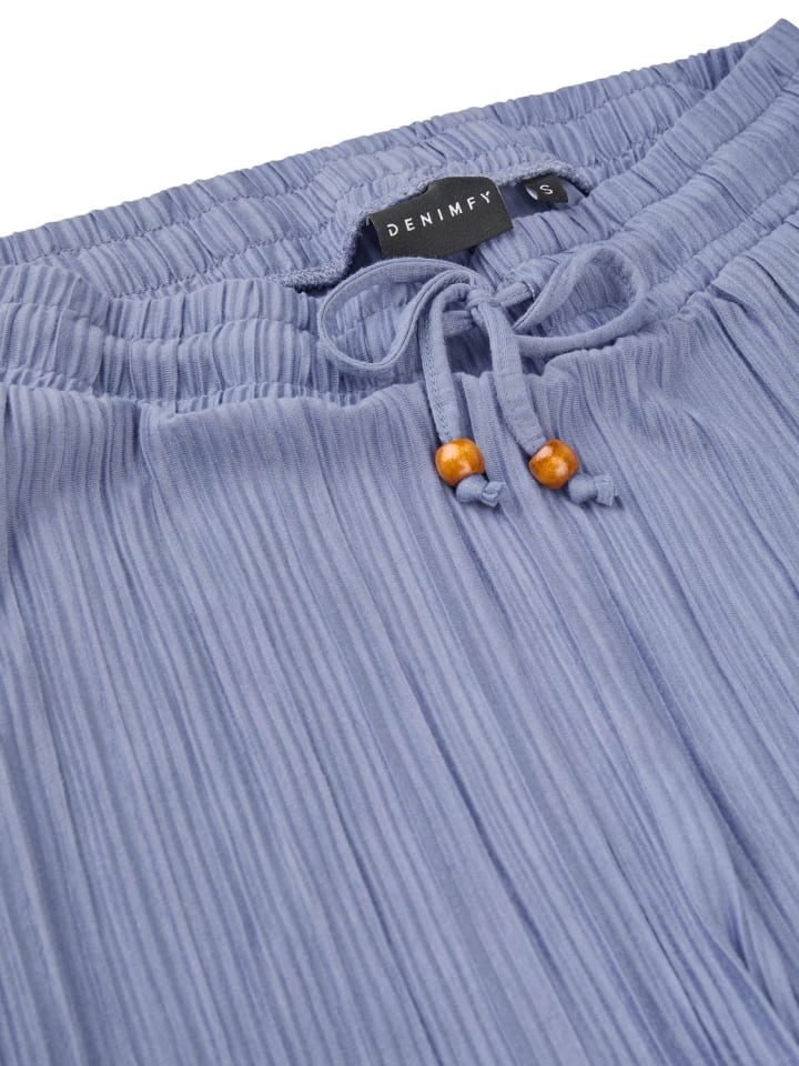 Летом воздушные, слегка прозрачные брюки из ткани длиной до щиколотки 7/8 с высокой талией, широкими штанинами и складками - незаменимая вещь для женщин. Прямой крой и горизонтальные складки создают иллюзию стройных ног. На берегу моря или озера, играя в мяч на пляже, отдыхая вечером в пляжном баре или в других случаях вы сможете насладиться самым прекрасным временем года в гораздо более расслабленной манере в брюках с широким кроем. Эти брюки для отдыха DENIMFY с практичными боковыми карманами имеют эластичный пояс со встроенным шнурком.