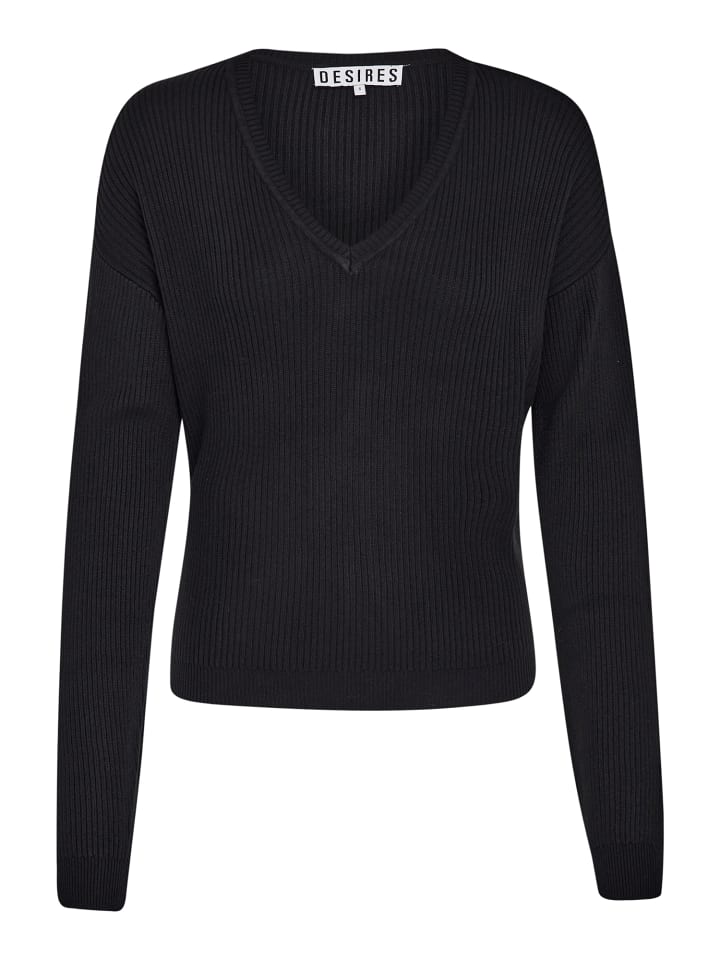 Красивый ребристый свитер. У свитера V-образный вырез и длинные рукава.