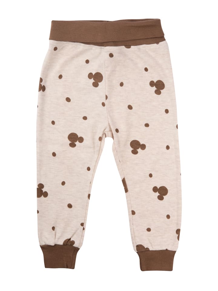 Каждая пара спортивных штанов в этом наборе обладает своим собственным очарованием. Пастельно-зеленые штаны украшены классическим принтом Микки Мауса и мило притягивают взгляд. Коричневые штаны впечатляют игривым рисунком силуэтов Микки и выглядят одновременно современно и стильно. Мягкие цвета прекрасно сочетаются и подходят к любому наряду.