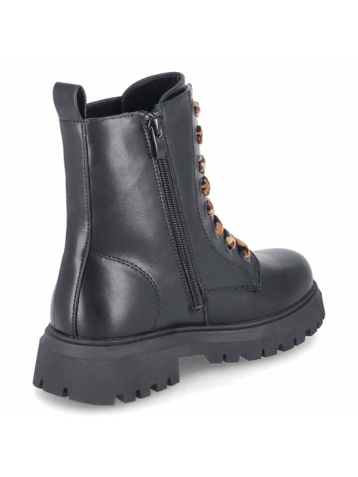 Детские ботинки Dockers на шнуровке стильные и прочные, выполнены из черного синтетического материала и легко моются. Круглый носок и блочный каблук высотой 4 см обеспечивают комфорт и устойчивость, а легкая теплая подкладка сохраняет ноги в тепле. Боковая молния позволяет легко надевать ботинки, а шнуровка с леопардовым принтом добавляет модный штрих. Усиленная пятка и язычок для застежки обеспечивают устойчивость при повседневной носке, а гибкая нескользящая подошва обеспечивает сцепление по дороге в школу и на игровых площадках. Благодаря стандартной посадке подобрать правильный размер не составит труда. Современный компаньон, гармонично сочетающий в себе функциональность и стиль. Модный совет: черные джинсы, шапочка бини и стеганая куртка создают монохромный образ, в котором шнурки с леопардовым принтом привлекают внимание.