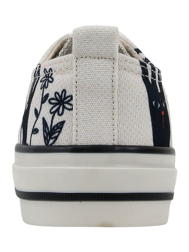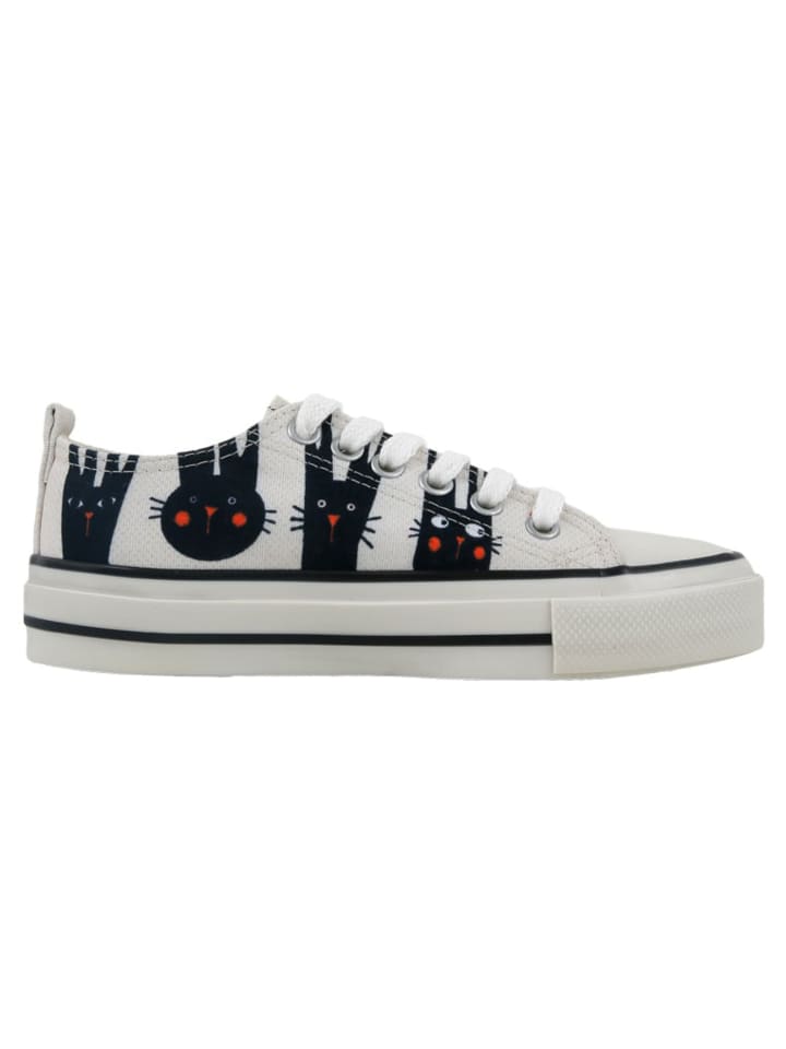 DOGO Liria - Line of Rabbits - это плоские кроссовки с графическим рисунком кролика на светлом фоне. На иллюстрациях изображены черные кролики с красными акцентами, расположенными в непрерывном порядке.
