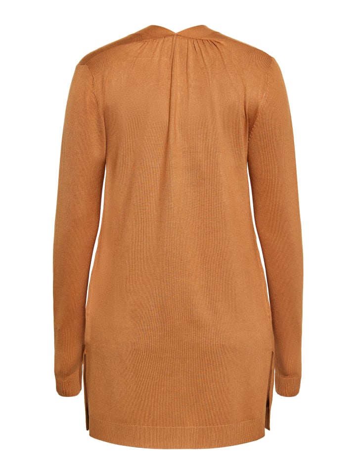 Представляем вам кардиган тонкой вязки с отделкой резинкой по манжетам, подолу и переду. Этот вязаный кардиган с длинными рукавами и свободным кроем создает стильный образ, подходящий для офиса. Прямой подол и длинный крой с естественной драпировкой придают ему непринужденный шарм, делая его идеальным дополнением к вашему гардеробу. Этот кардиган, разработанный совместно с RISA, сочетает в себе классический стиль и современный дизайн.
