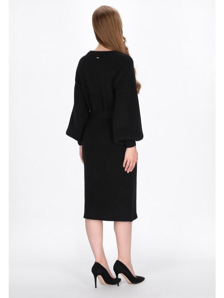 - Платье миди свободного кроя с круглым вырезом и длинными рукавами