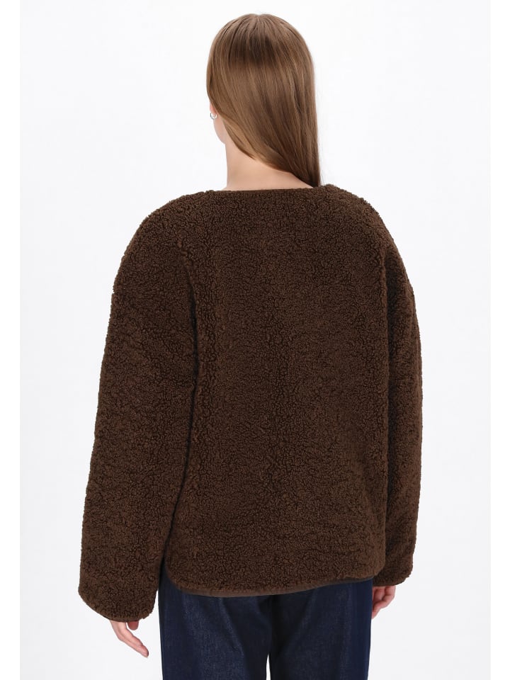 - Куртка свободного кроя с круглым вырезом и длинными рукавами