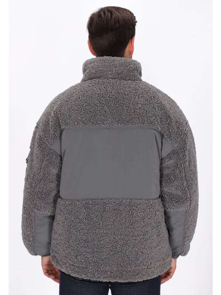 - Куртка свободного кроя с воротником-стойкой и длинными рукавами