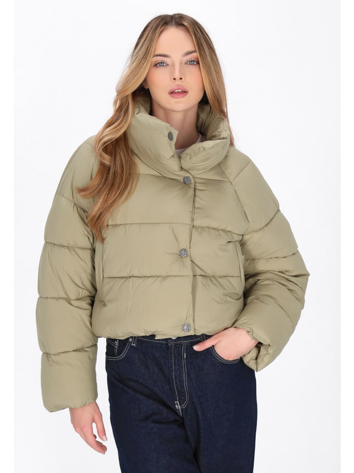 - Утепленная куртка прямого кроя с воротником-стойкой и длинными рукавами