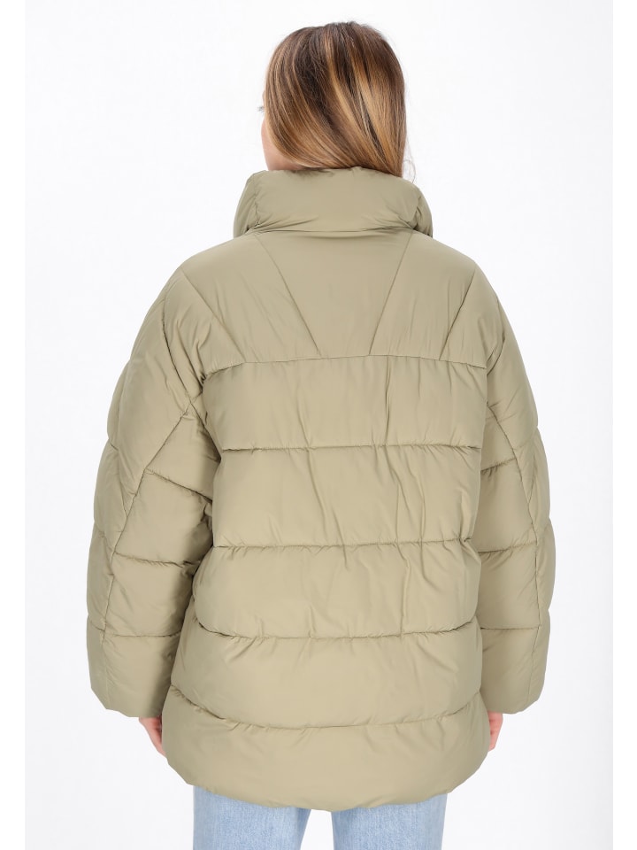 - Утепленная куртка прямого кроя с воротником-стойкой и длинными рукавами