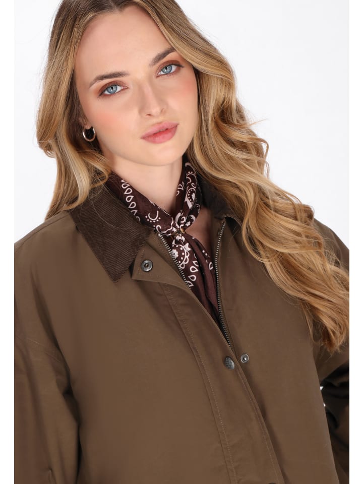 - Пальто свободного кроя с классическим воротником и длинными рукавами