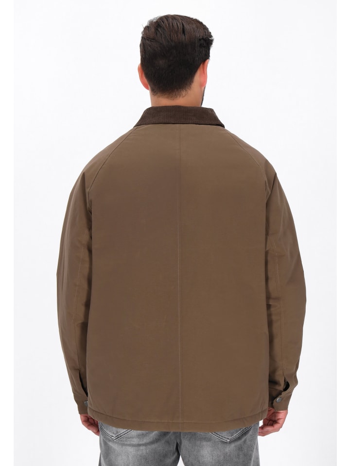 - Куртка свободного кроя с классическим воротником и длинными рукавами