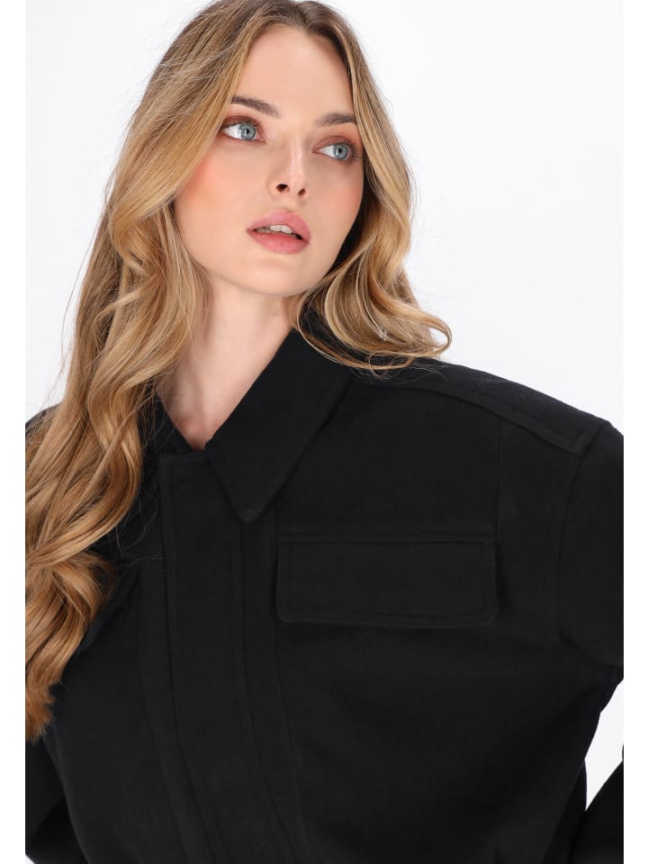 - Укороченная куртка свободного кроя с классическим воротником и длинными рукавами