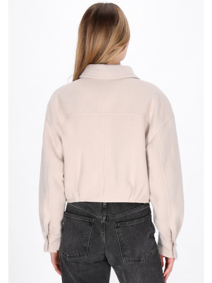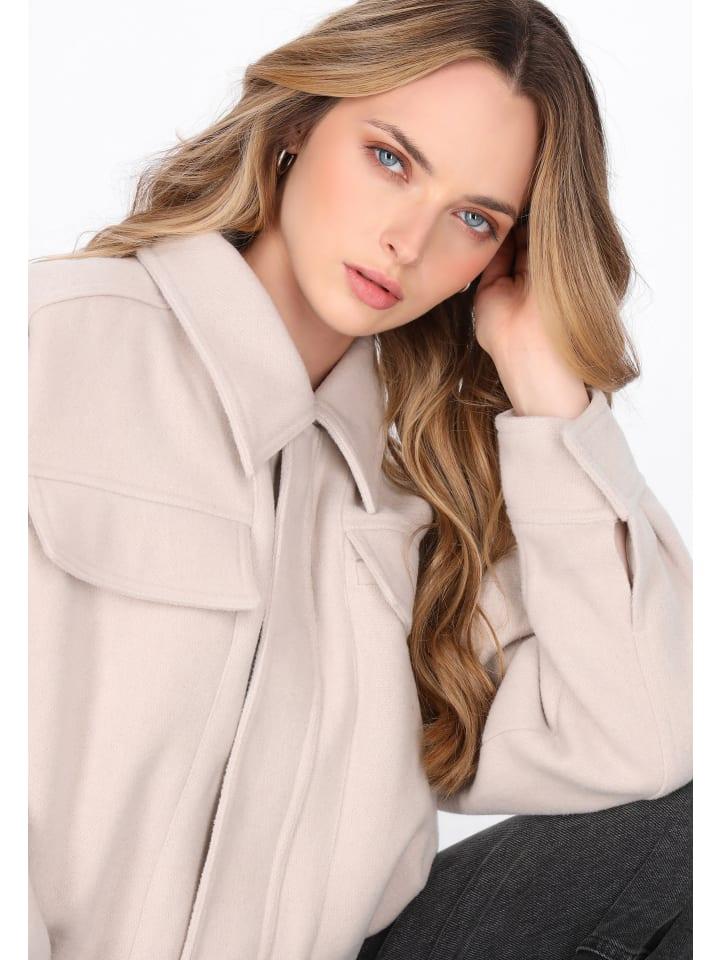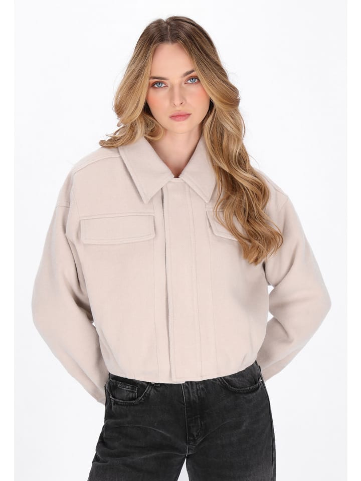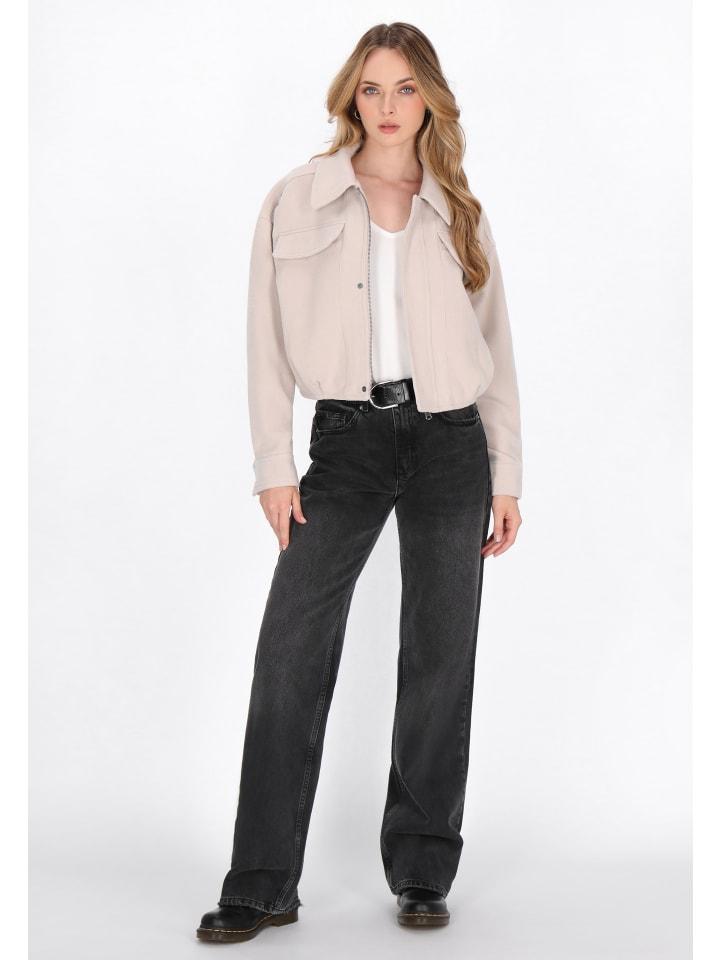 - Укороченная куртка свободного кроя с классическим воротником и длинными рукавами