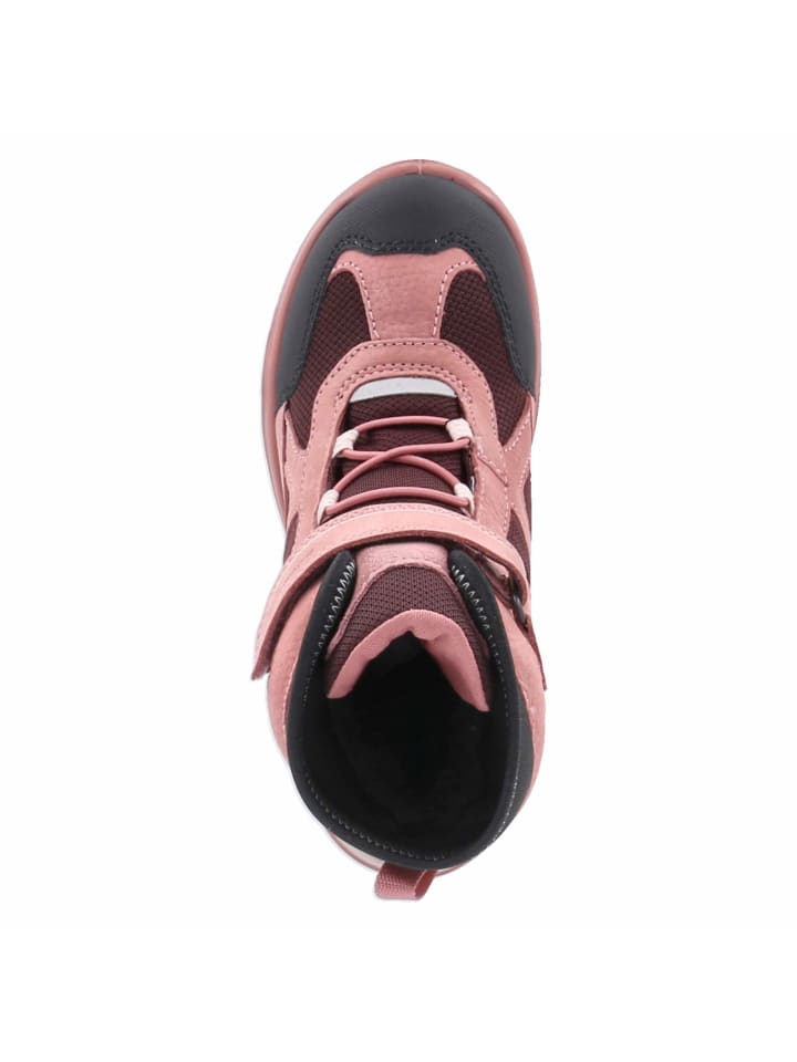 Детские зимние ботинки Ecco SNOW MOUNTAIN розового цвета из прочного материала из кожи и текстиля обеспечивают оптимальную защиту в холодные и дождливые зимние дни. Благодаря водонепроницаемым и дышащим материалам ноги остаются сухими и хорошо проветриваются даже в снег и дождь. Практичная застежка с резинкой и липучками обеспечивает удобство использования и надежную посадку.