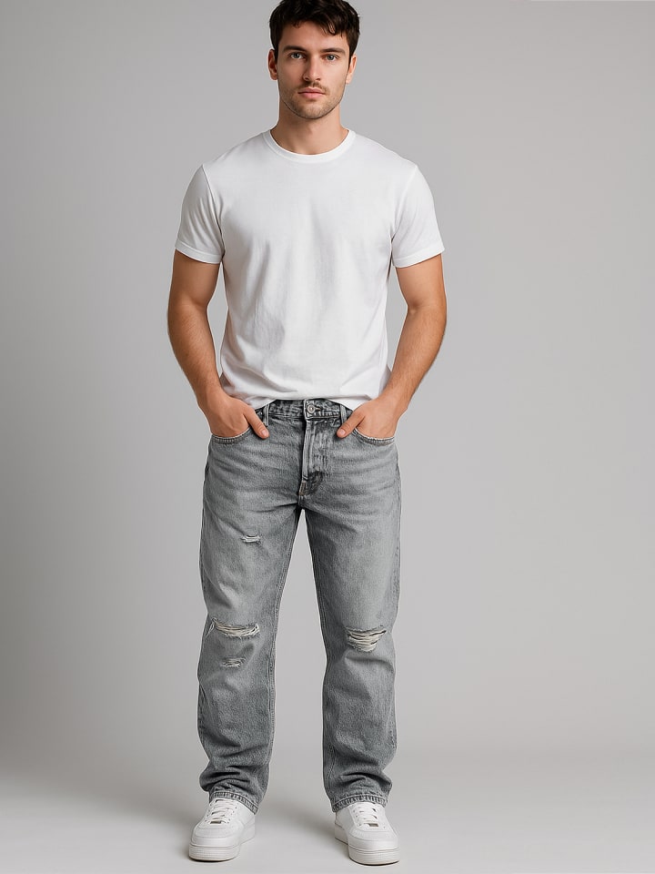 ---- YAKIMA - EGO EGO A\u0026S Мужские джинсы свободного кроя с рваным эффектом - 100% хлопок ---- Изделие идет размер в размер. Материал: 100% хлопок Посадка: удобная Застежка: кнопки 9092 Инструкция по уходу: машинная стирка при 40°C