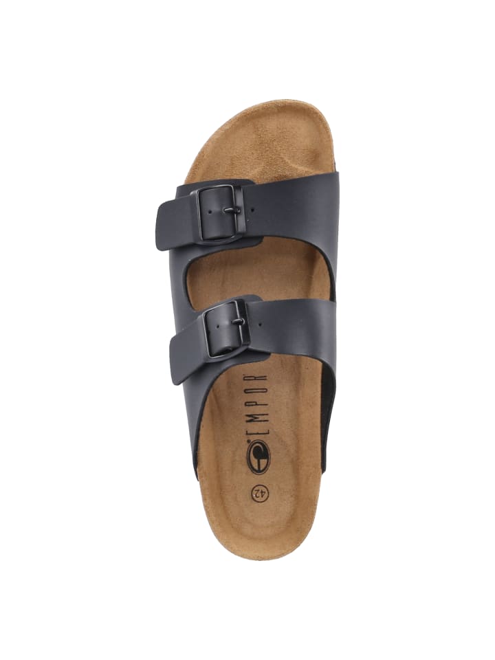 Эти мужские мюли Empor сочетают в себе непринужденный комфорт и четкие линии. Легкий в уходе синтетический верх выполнен в изысканном сером цвете, который в зависимости от освещения приобретает темно-синий оттенок, а открытый носок обеспечивает приятную воздушность. Две регулируемые пряжки обеспечивают надежную посадку и позволяют регулировать ширину. Приятная на ощупь кожаная стелька бережно ухаживает за стопой; мягкая глубокая стелька из натуральной пробки с мягкой кожаной накладкой поддерживает стопу и обеспечивает необходимый комфорт. Каблук высотой 3 см обеспечивает небольшую высоту и комфортный внешний вид. Благодаря классическому крою эта модель станет идеальным спутником как в городе, так и на веранде. Модный совет: особенно гармонично сочетается с льняными брюками, шортами чинос и повседневной трикотажной рубашкой-поло приглушенных синих оттенков. Для городского образа необработанный деним гармонирует с простой верхней рубашкой.