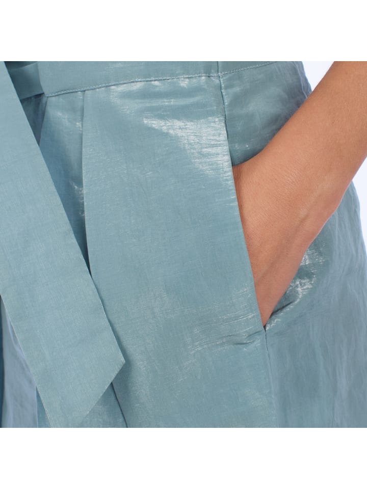 Высокая талия оснащена поясом со скрытой пряжкой, который позволяет регулировать и подчеркивать силуэт, придавая ему женственность и изысканность.