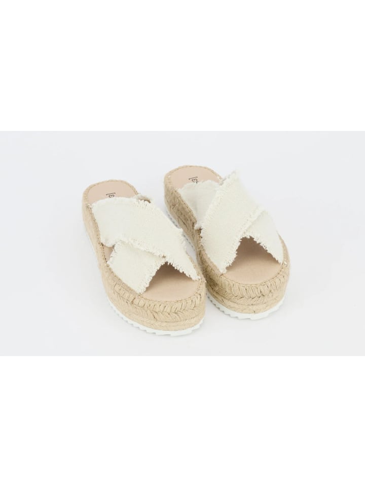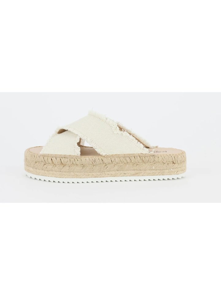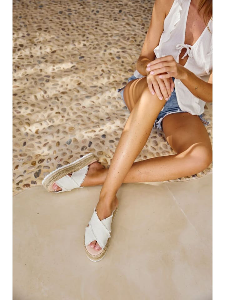 Два широких перекрещенных ремешка из натурального льна придают им повседневный, неподвластный времени вид