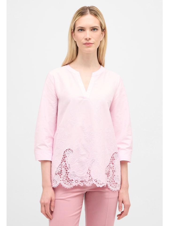 Наша однотонная блузка с элегантной вышивкой и рукавом три четверти, без застежек, с люверсами, отвечает требованиям женщин, ценящих качество и желающих быть в тренде.