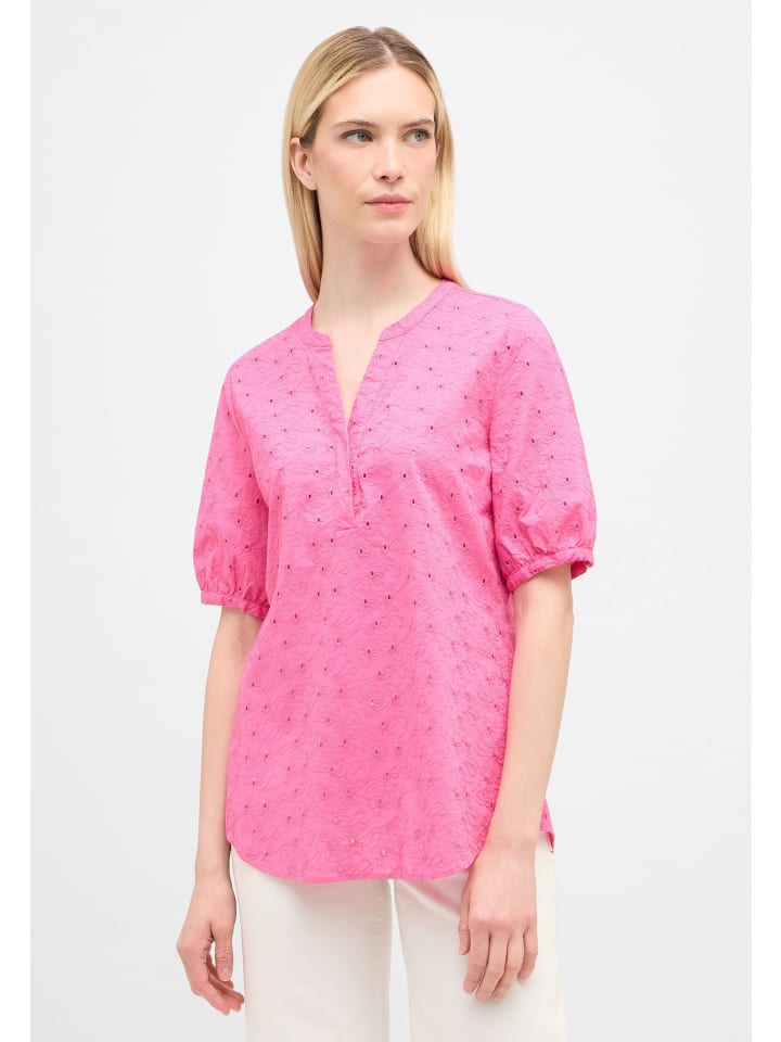 Наша однотонная структурированная блузка без застежек с вышивкой с люверсами отвечает требованиям женщин, ценящих качество и желающих быть в тренде.