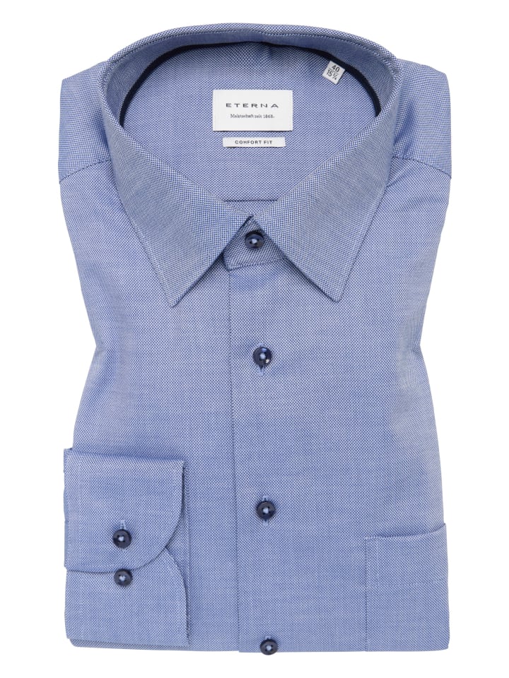 Наша рубашка COMFORT FIT имеет базовый воротник Kent, подол закруглен и имеет нормальную длину, поэтому ее можно носить и в повседневной жизни. Можно носить поверх брюк.