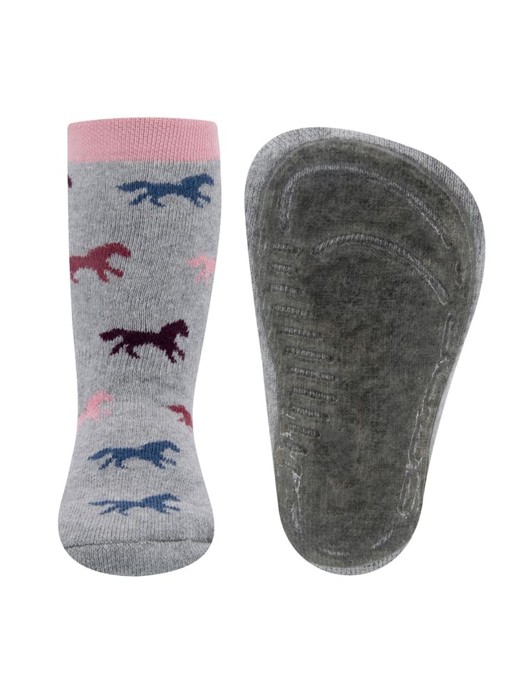 Для всех любителей лошадей... Эти нескользящие носки Softstep с милым изображением лошадки на голенище, лошадками по всей поверхности, однотонным носком и мягкой внутренней поверхностью - идеальная альтернатива домашним тапочкам. Высококачественная обработка и эргономичное силиконовое покрытие обеспечивают идеальную посадку и надежную защиту от скольжения на гладком полу. Прочный и простой в уходе хлопковый материал с эластичным поясом также обеспечивает комфортную посадку. 80% хлопок, 17% полиамид, 3% эластан. Сделано в Германии. СТАНДАРТ 100 от OEKO-TEX. Номер сертификата 98. 0. 8426.