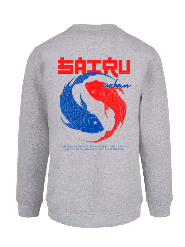 Уличная одежда в японском стиле. Базовый круглый вырез, стандартный крой. Удобный свитер с круглым вырезом. Удобный крой, свободный крой. Японский уличный стиль Рыба Кои.