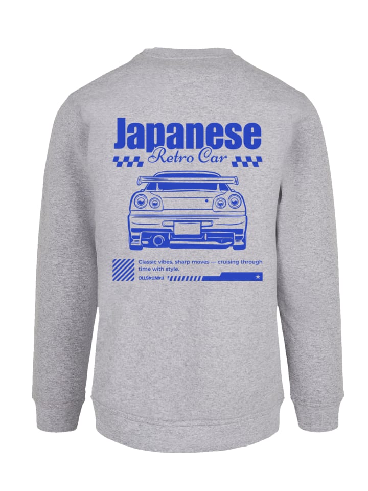 Уличная одежда в японском стиле. Базовый круглый вырез, стандартный крой. Удобный свитер с круглым вырезом. Удобный крой, свободная посадка. Японский уличный стиль в стиле ретро-автомобилей.