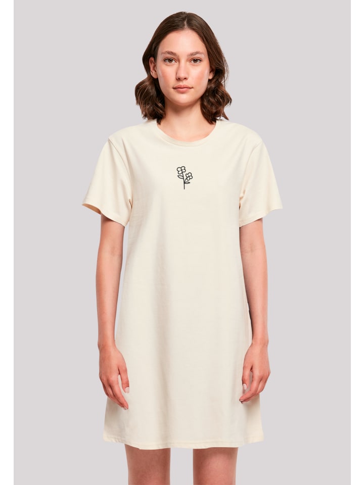 Платье-футболка с вышивкой. Простое женское платье-футболка из хлопка. Слегка расклешенный А-силуэт для отличной фигуры. Удобный свободный крой и короткие рукава. Нарисованный вручную цветок розового цвета EOD