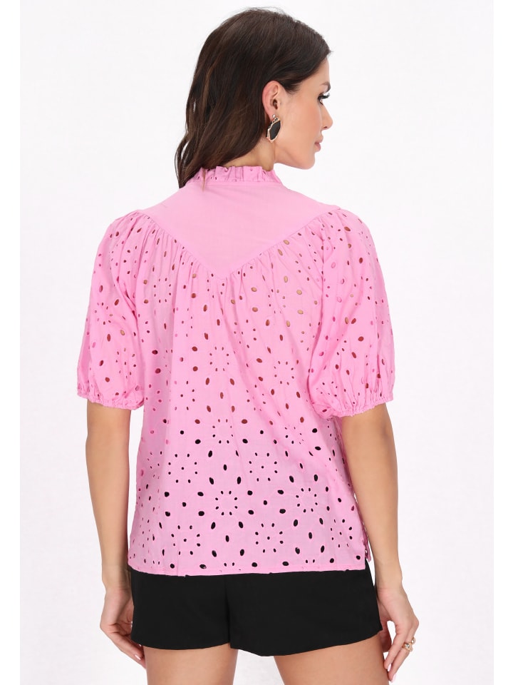 Эта блузка станет стильным дополнением к вашему модному образу. Свободный крой, круглый вырез и гофрированный воротник создают непринужденный образ. Короткие рукава-фонарики и застежка на пуговицы спереди добавят изысканности, а изысканный вышитый узор подчеркнет повседневный стиль. Идеально подходит для модниц, которые ищут универсальную и в то же время стильную вещь.