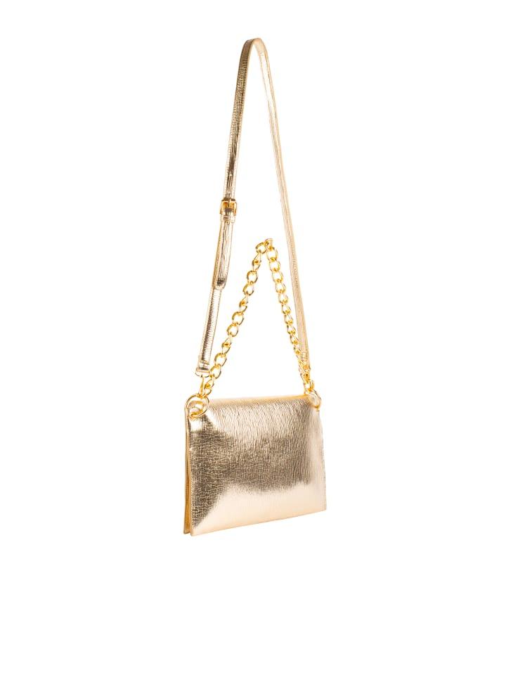 Гламурная вечерняя сумочка от Faina очаровывает своим блестящим металлическим блеском. Модели серебристого, черного и красного цветов поражают тиснением под кожу рептилий, а золотистая версия отличается ребристым покрытием. Небольшой закругленный клапан закрывается на практичную магнитную застежку. Золотистую цепочку через плечо можно положить внутрь сумки, и ее можно носить как клатч. Длинный съемный регулируемый плечевой ремень обеспечивает дополнительные возможности для переноски. Основное отделение с текстильной подкладкой и боковым карманом на молнии вместит все необходимое.