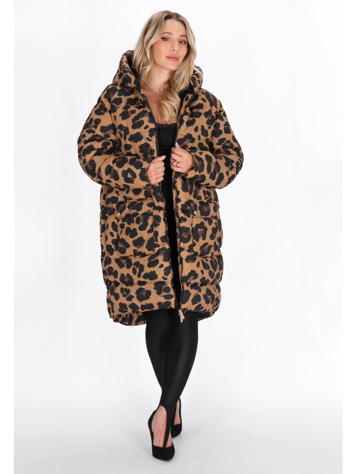 Это пальто прямого кроя - идеальное сочетание комфорта и модного дизайна. Леопардовый принт придает ему особый характер и идеально подходит для городского стиля. Оно дополнено практичным капюшоном, длинными рукавами, застежкой-молнией и карманами с клапанами для дополнительной функциональности. Изготовлено из прочной ткани, обеспечивающей тепло и комфорт даже в холодные дни. Идеально подходит для повседневной носки - стильное и надежное изделие из коллекции Fashion Look.