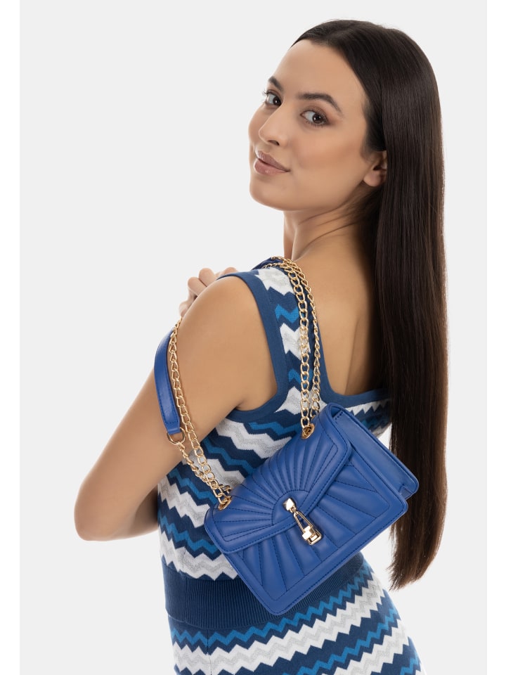 Представляем стильную сумку-клапан со стеганым дизайном и поворотной застежкой для надежного закрытия. Эта небольшая прямоугольная сумка оснащена цепочным ремнем, продетым через ткань в тон и закрепленным крупными металлическими кольцами. Эта сумка из экокожи с внутренним карманом на молнии и элегантной стеганой отделкой излучает изысканность.