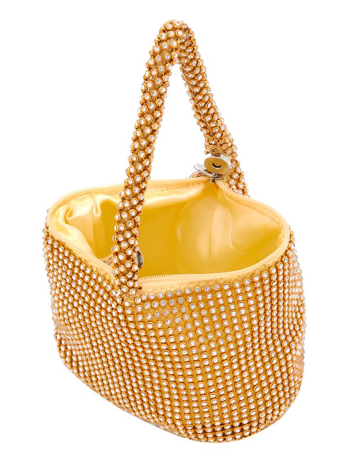 Украсьте свой вечерний образ этой потрясающей небольшой сумочкой круглой формы с верхней ручкой. Украшенная сверкающими стразами, она красиво сияет при любом освещении. Молния обеспечивает надежное хранение необходимых вещей. Этот шикарный аксессуар идеально подходит для официальных мероприятий или в качестве яркого акцента.