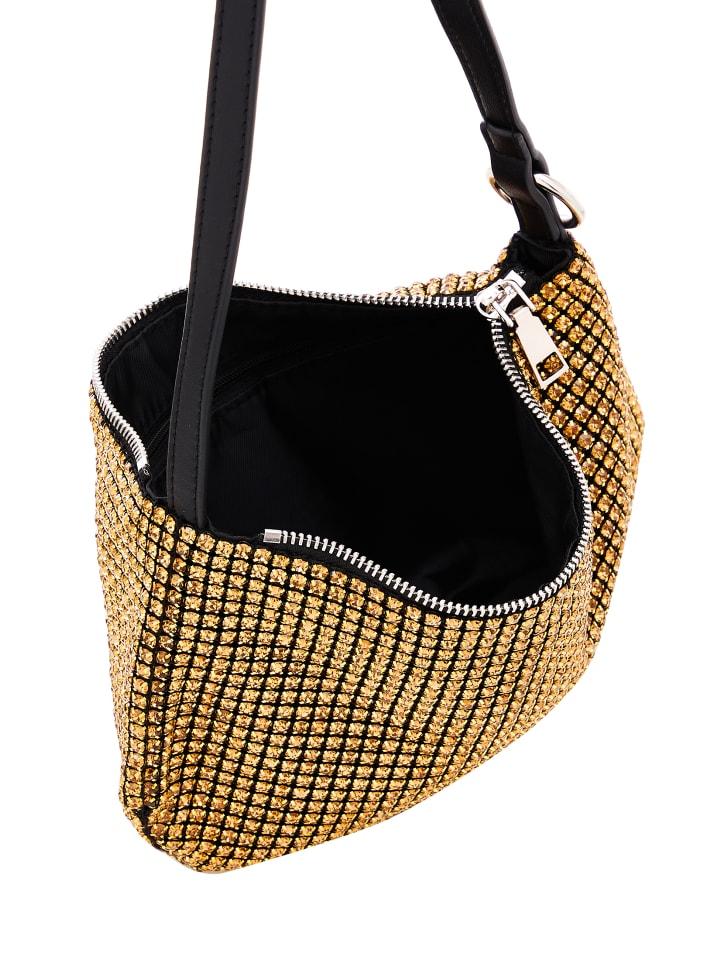 Этот клатч полуцилиндрической формы с характерным узором. Застежка-молния и внутренний карман обеспечивают надежное хранение личных вещей. Этот элегантный аксессуар, выполненный из смеси материалов и украшенный сверкающими стразами, излучает изысканность и идеально подходит для вечерних мероприятий.