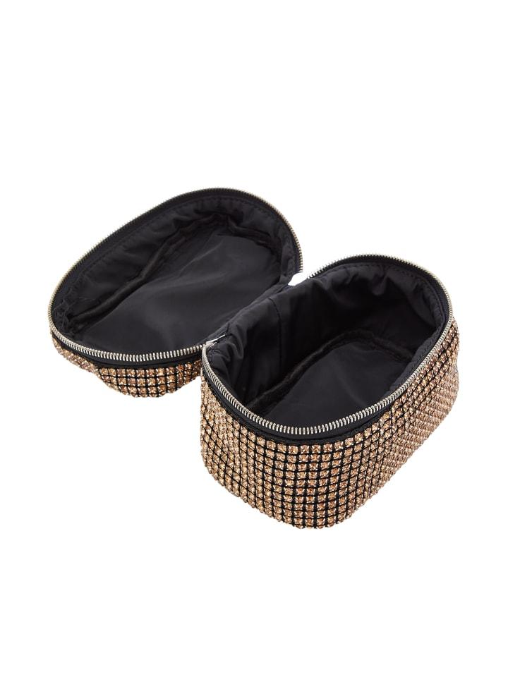 Эта элегантная сумочка небольшой квадратной формы украшена сверкающими стразами, образующими шикарный блестящий узор. Верхняя ручка и металлические акценты подчеркивают ее изысканный вид. Благодаря надежной застежке-молнии и комбинированным материалам эта структурированная модель идеально подходит для вечерних мероприятий, выделяясь своим блестящим, светоотражающим внешним видом.