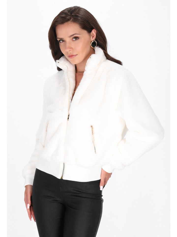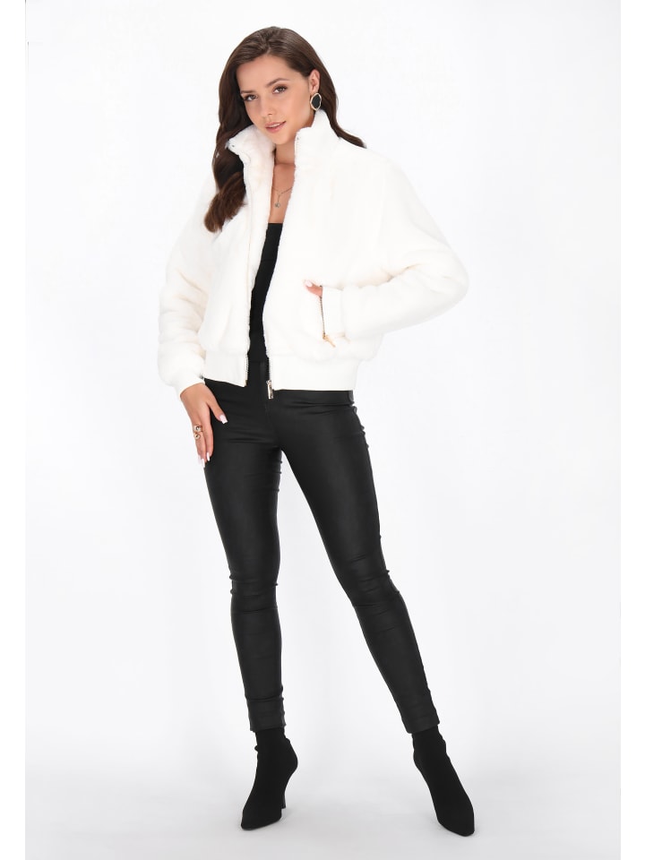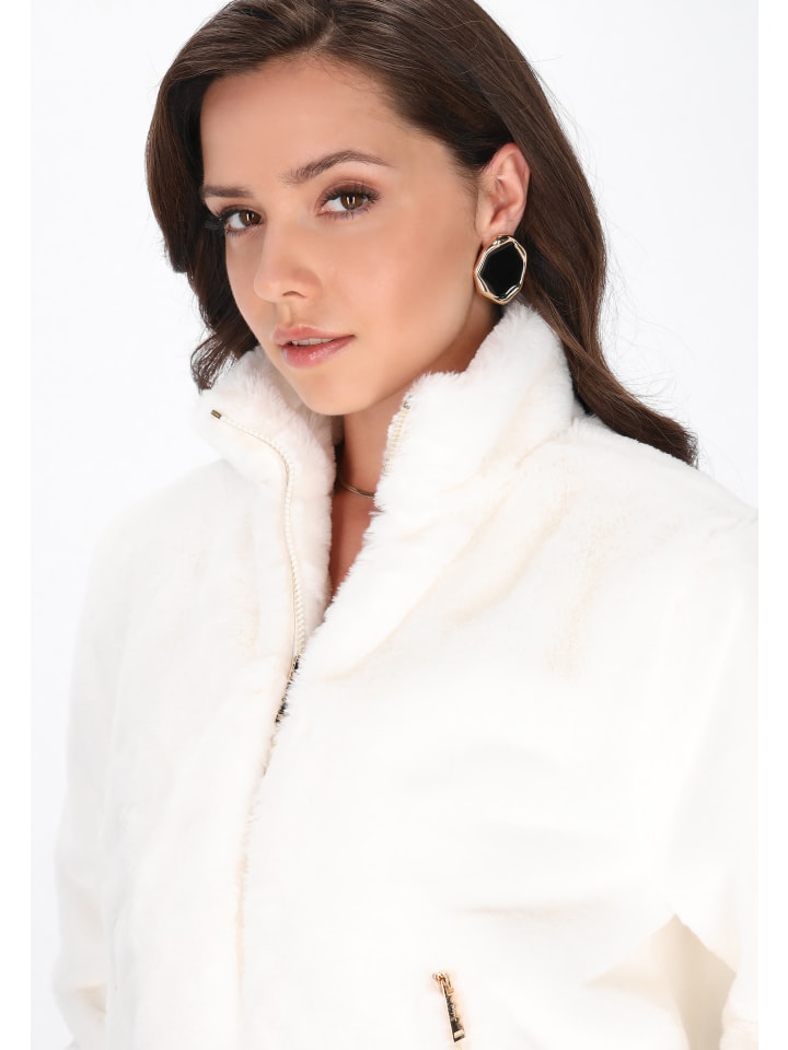 Эта куртка - идеальное сочетание стиля и комфорта на каждый день. Изготовлена из мягкого, приятного на ощупь искусственного меха, который согреет и обеспечит комфорт в холодные дни. Модель прямого кроя оснащена практичной застежкой-молнией, карманами на молнии и ребристым подолом, который подчеркивает силуэт и защищает от ветра. Воротник-стойка добавляет современный штрих, а однотонная фактура делает куртку невероятно универсальной. Она входит в коллекцию Fashion Look.