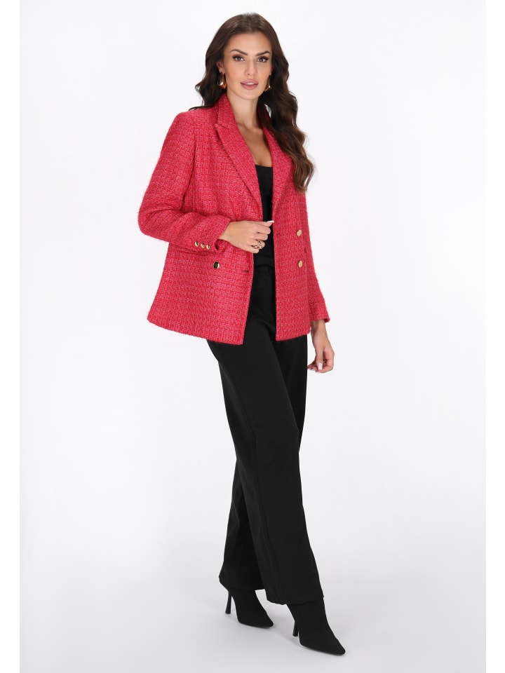 Добавьте элегантности в свои образы с этим уникальным жакетом из коллекции Fashion Look. Изготовленный из высококачественной плетеной ткани с металлической нитью, он очаровывает своим легким блеском и классическим клетчатым узором. Модель прямого кроя имеет воротник с лацканами, V-образный вырез, длинные рукава, двубортную планку и практичные карманы с клапанами. В совокупности это создает элегантный, вневременной образ, идеально подходящий для особых случаев и вечерних выходов.