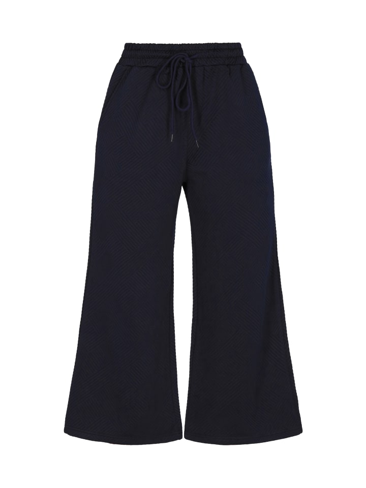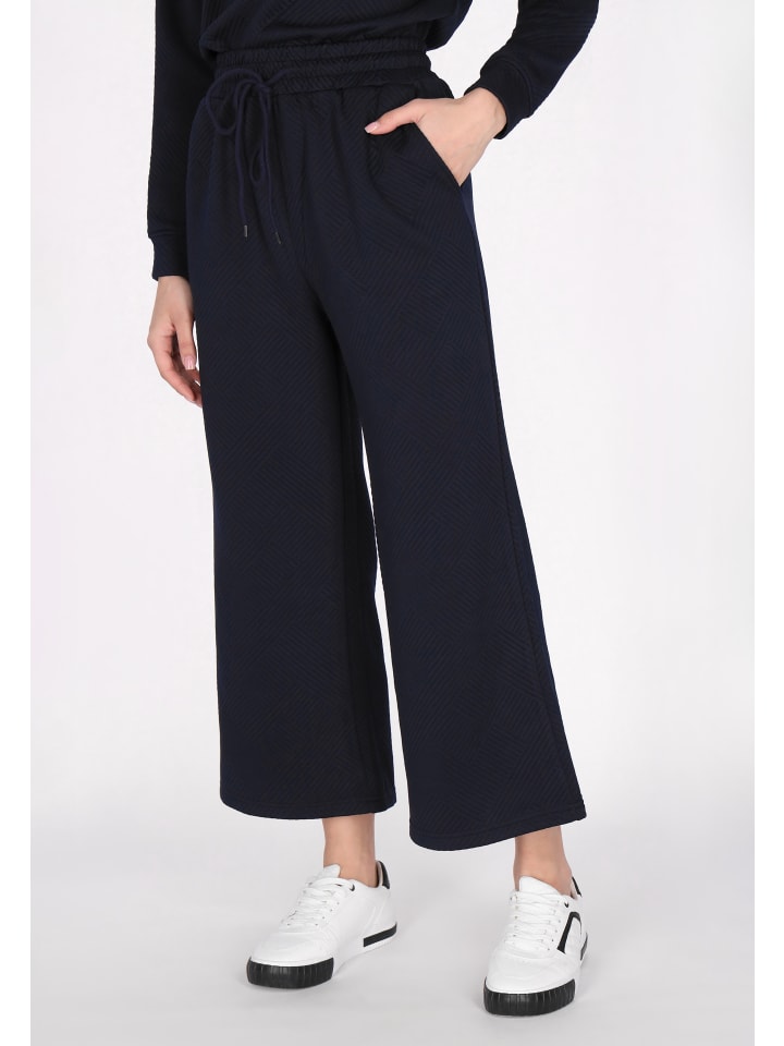 Подарите себе комфорт в этих стильных спортивных брюках свободного кроя длиной 7/8. Широкий крой дополнен эластичным поясом со шнурком для идеальной посадки. Благодаря удобным карманам и элегантному рельефному трикотажному узору эти брюки идеально подходят как для повседневных прогулок, так и для создания спортивного образа. Они входят в коллекцию Fashion Look.